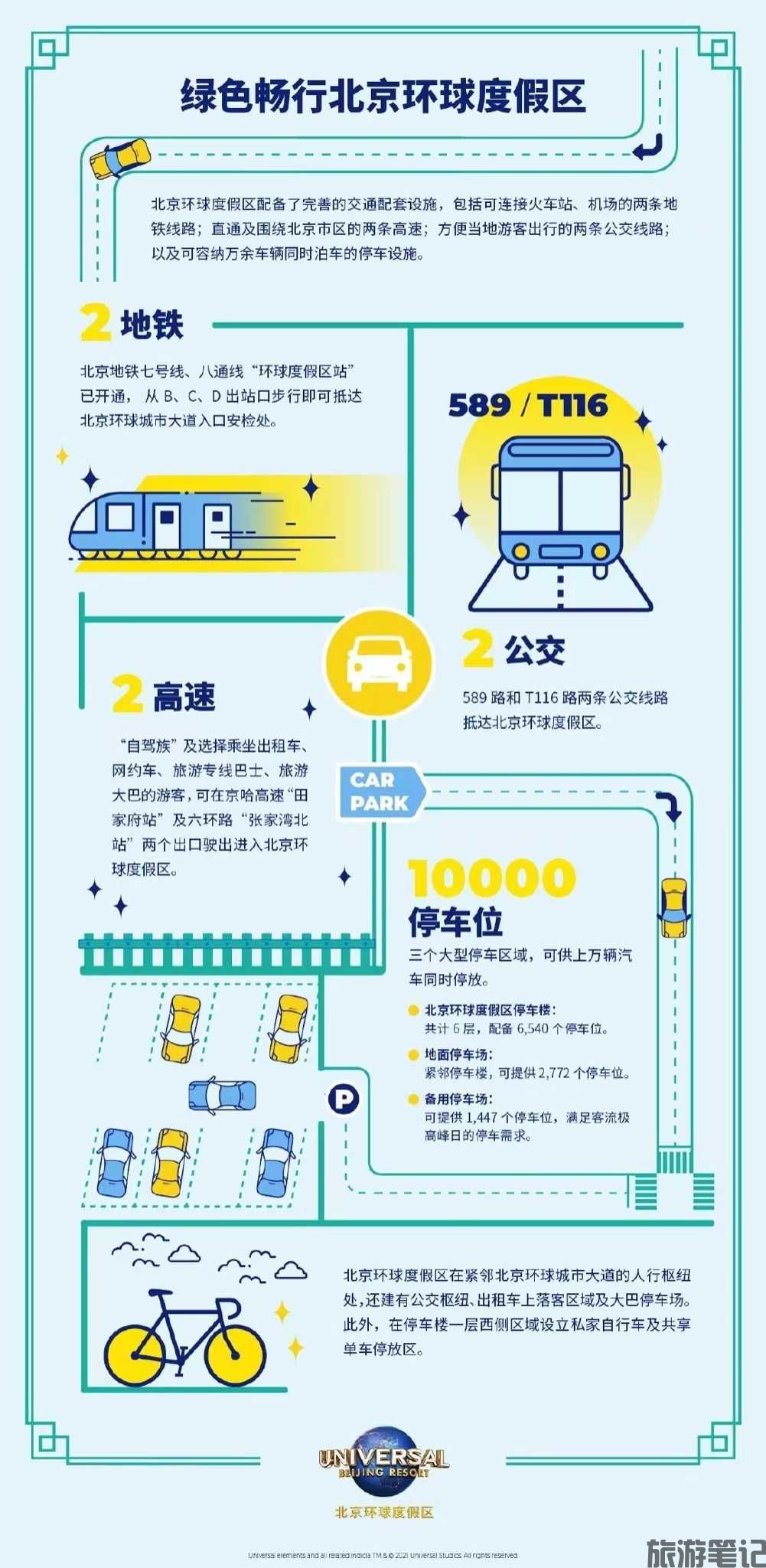 - 其他选择:打车至环球地铁站 F 口,穿过隧道从 C 口出;市区定制公交连接国贸、三里屯等枢纽,7:00-20:40 运营,间隔约 8 分钟